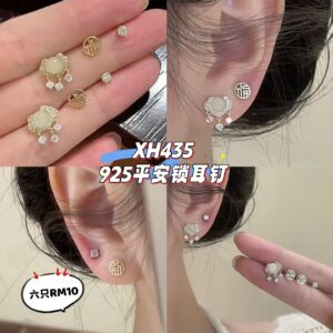 XH435 925平安锁耳钉(6只)