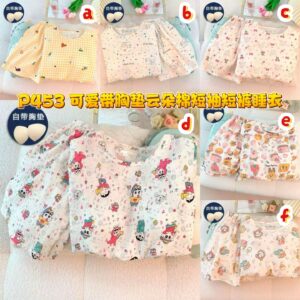 P453 可爱带胸垫云朵棉短袖短裤睡衣(1套)