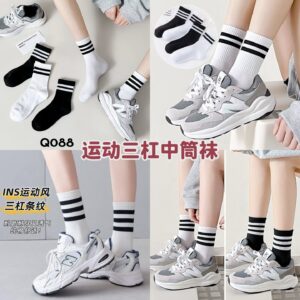 Q088 运动三杠中筒袜 (6双)