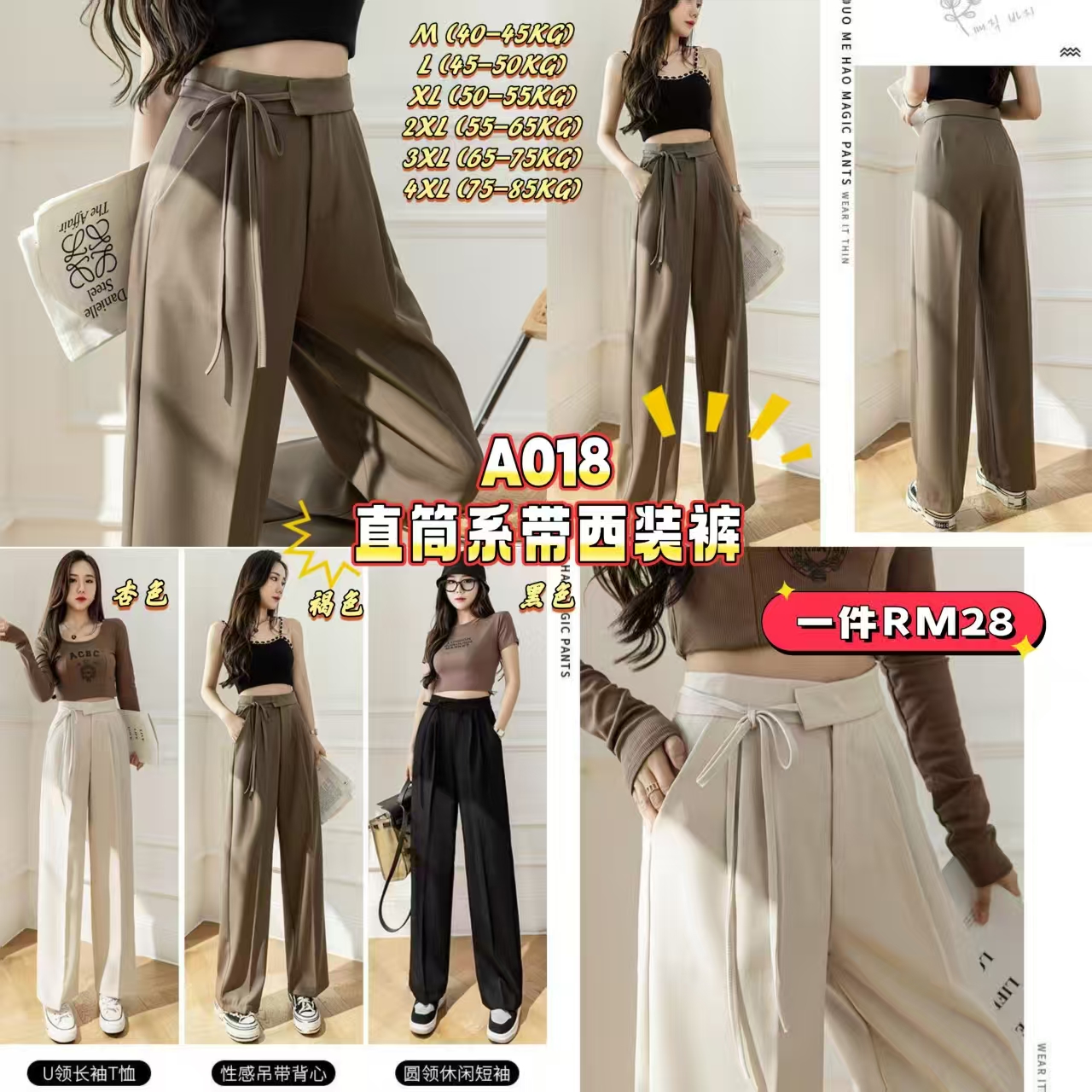 A018 直筒系带西装裤 🛍️#一件Rm28