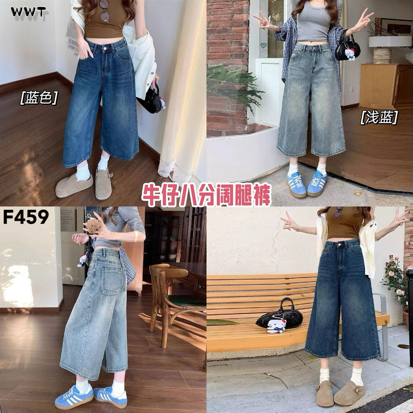F459 牛仔八分阔腿裤 RM38.90
