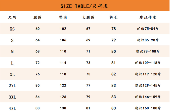 XS-4XL(参考尺码图)