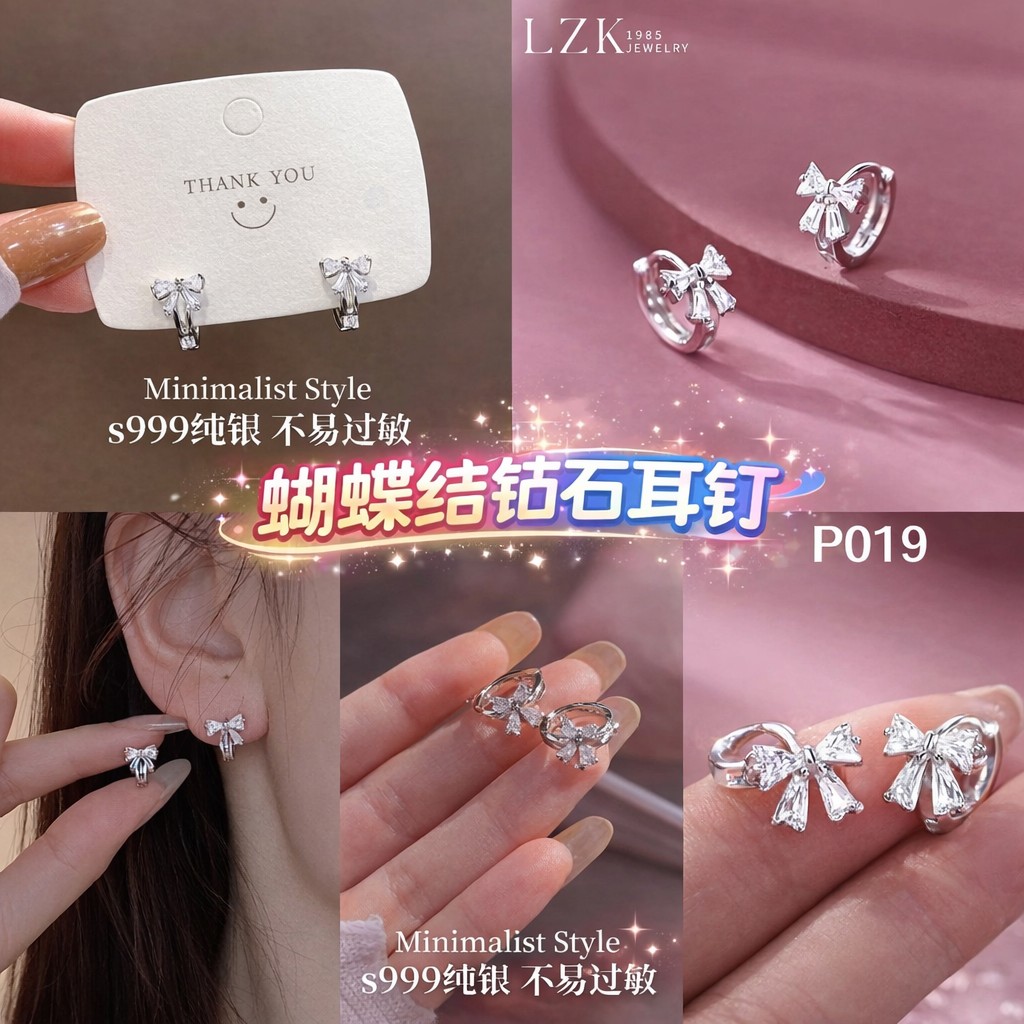 Be the first to review “P019 蝴蝶结锆石耳钉 (一对)”