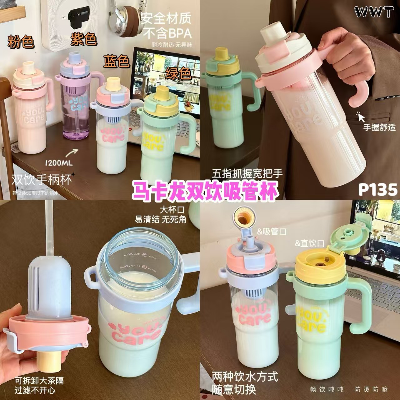 吸管直饮两种方式随时切换,手柄设计拿着超顺手~