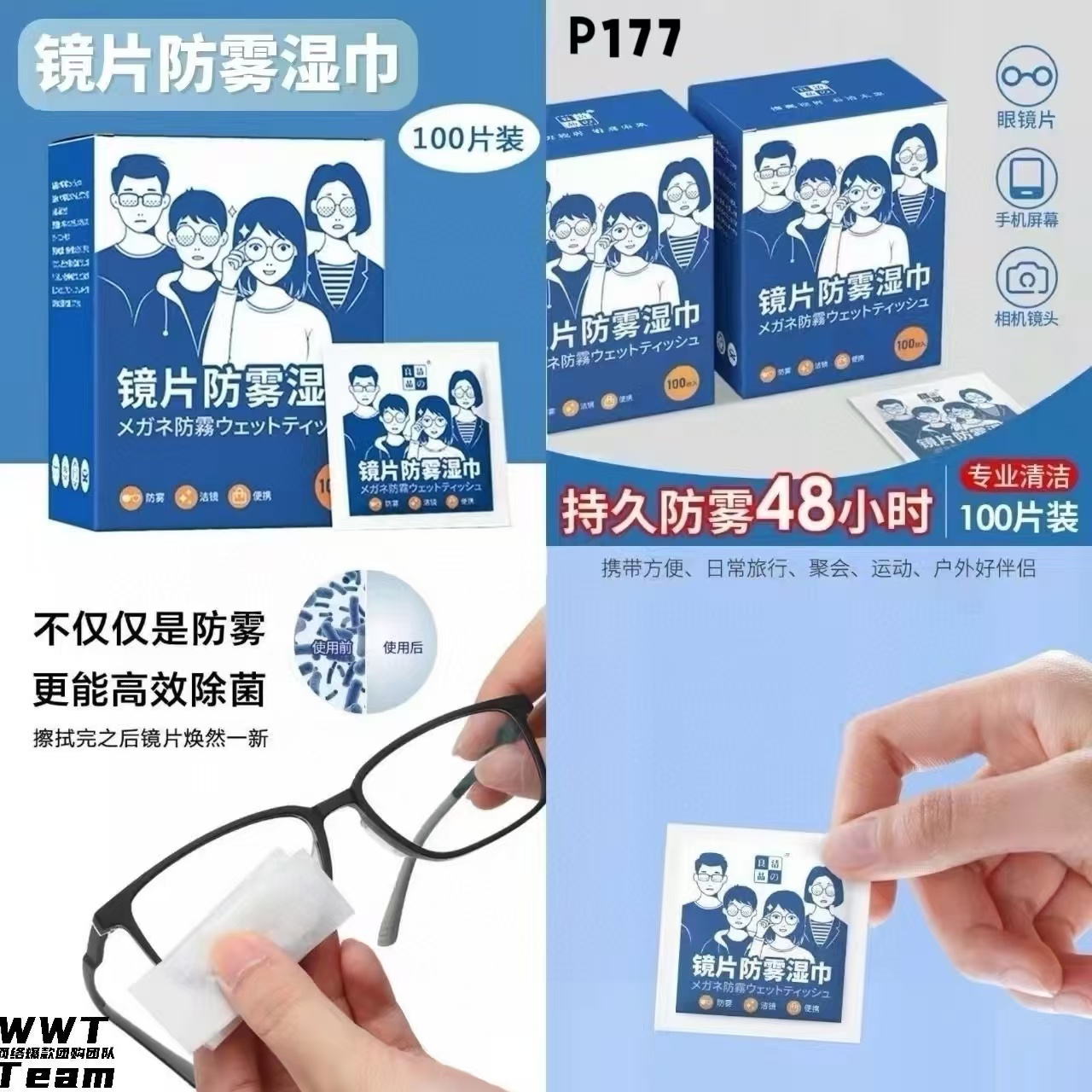 P177 镜片防雾湿巾 (200片)