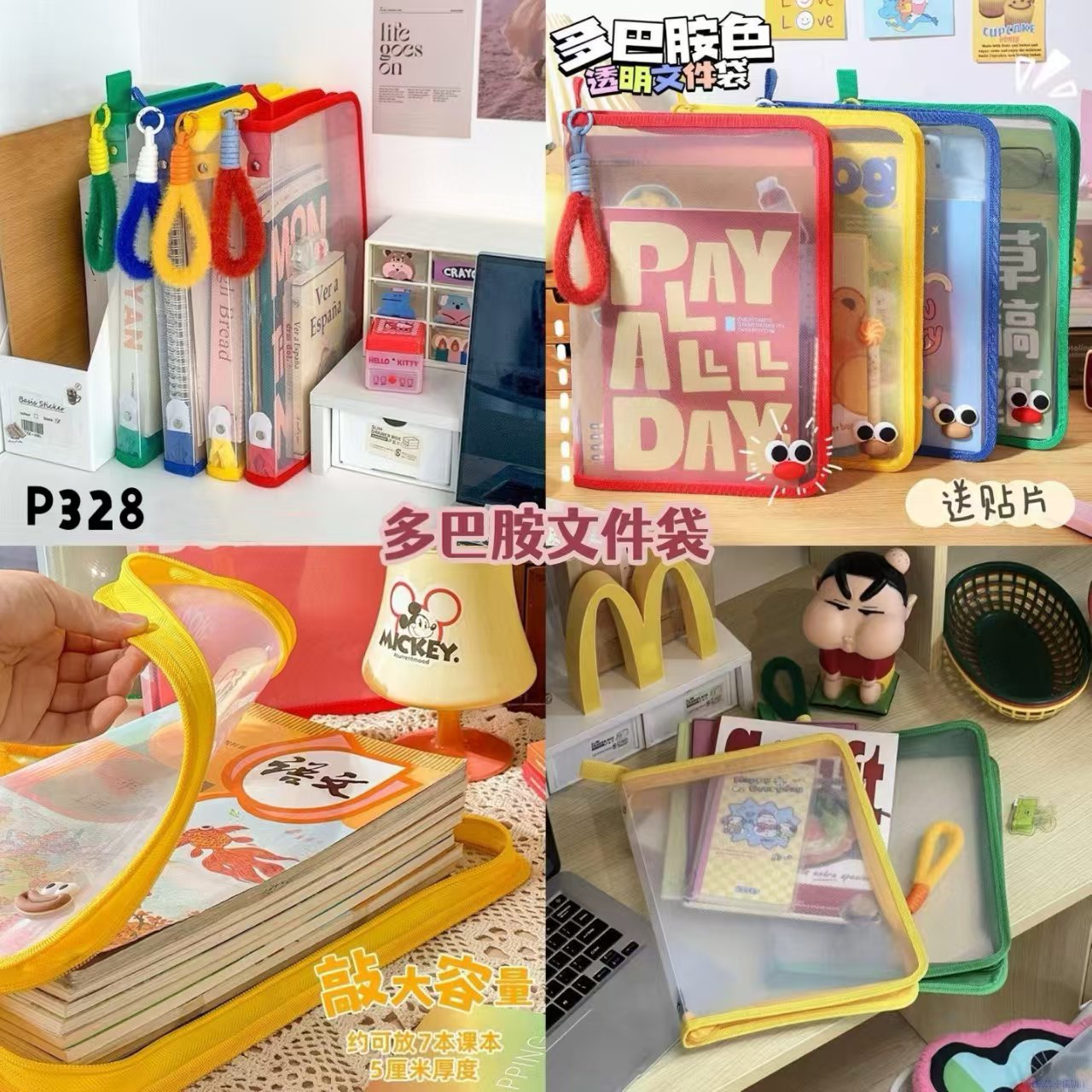 大容量,可以放很多文件,手提款式,带文件出门也方便,有送大嘴立体贴哦😍