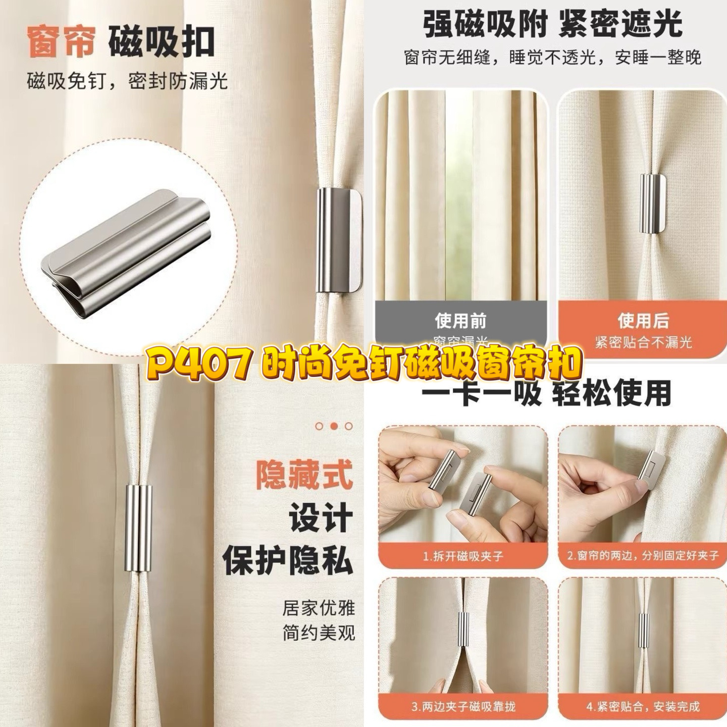 P407 时尚免钉磁吸窗帘扣 RM10(2对4个)