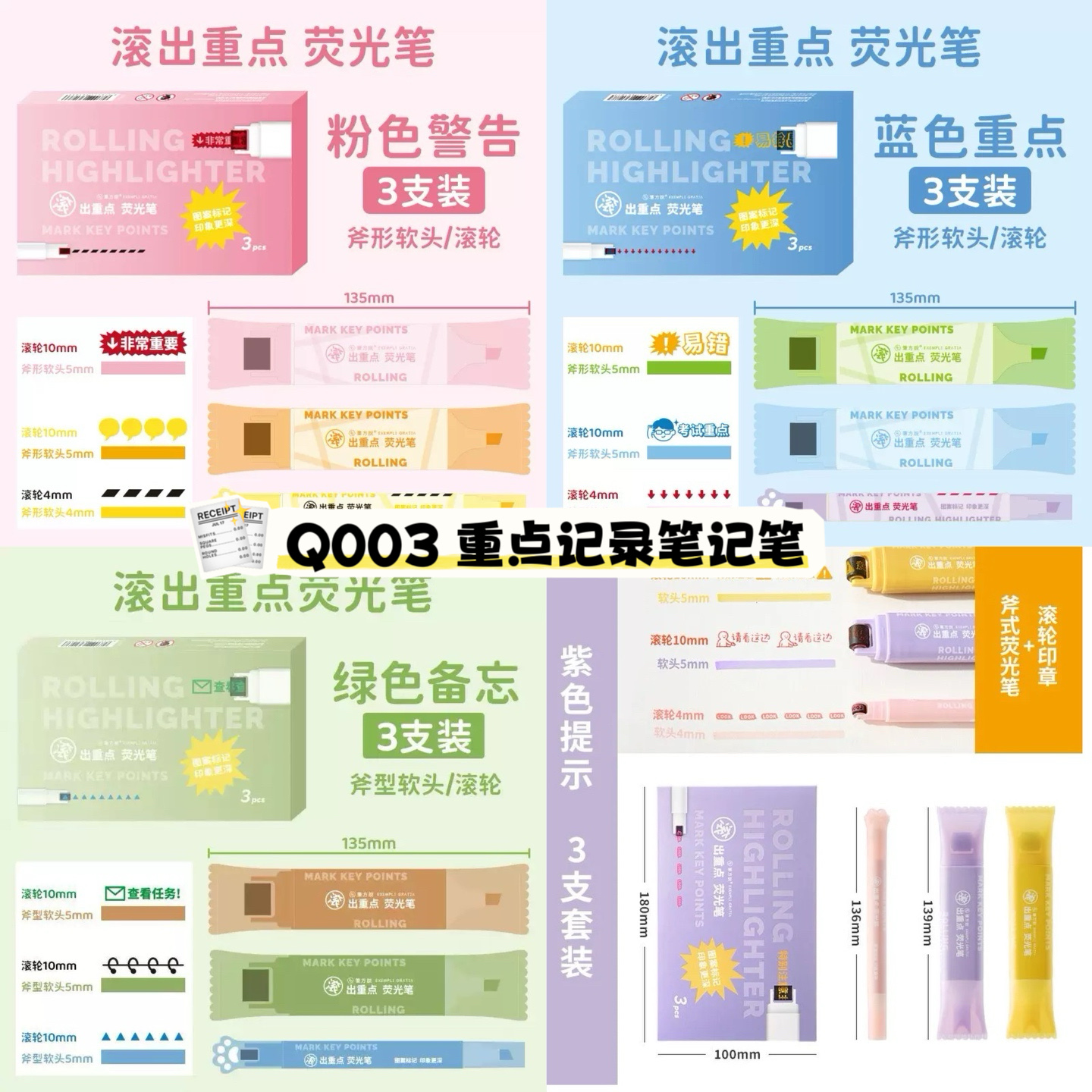 Q003 重点记录笔记笔 (1盒3支)