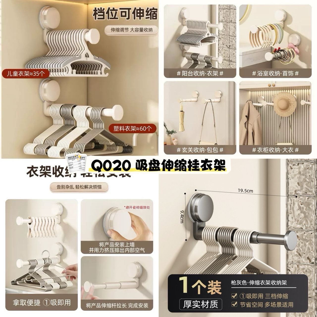 一挂多用,👕无痕吸盘稳固不伤墙面,随时收纳轻松搞定!