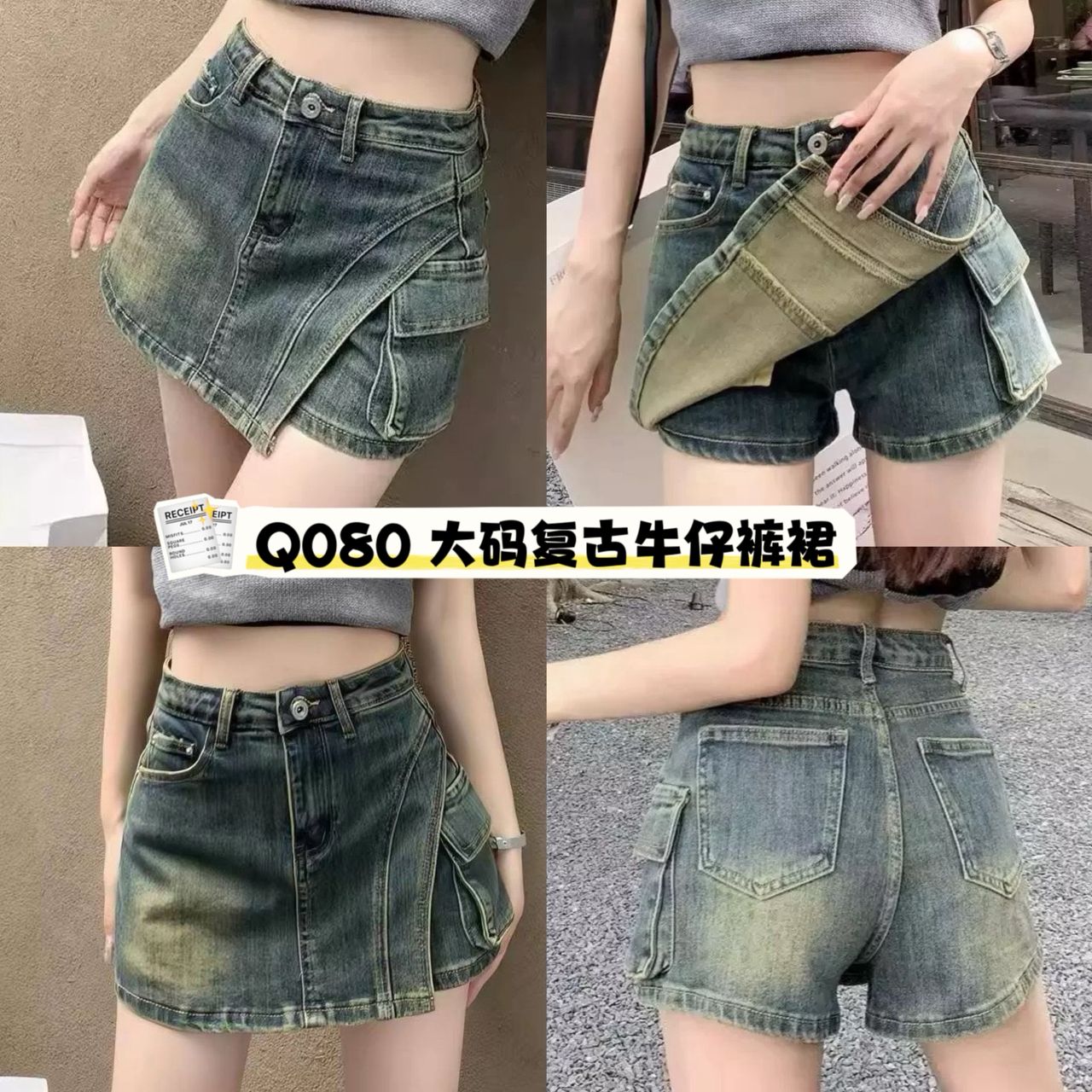 🛍 Q080 大码复古牛仔裤裙