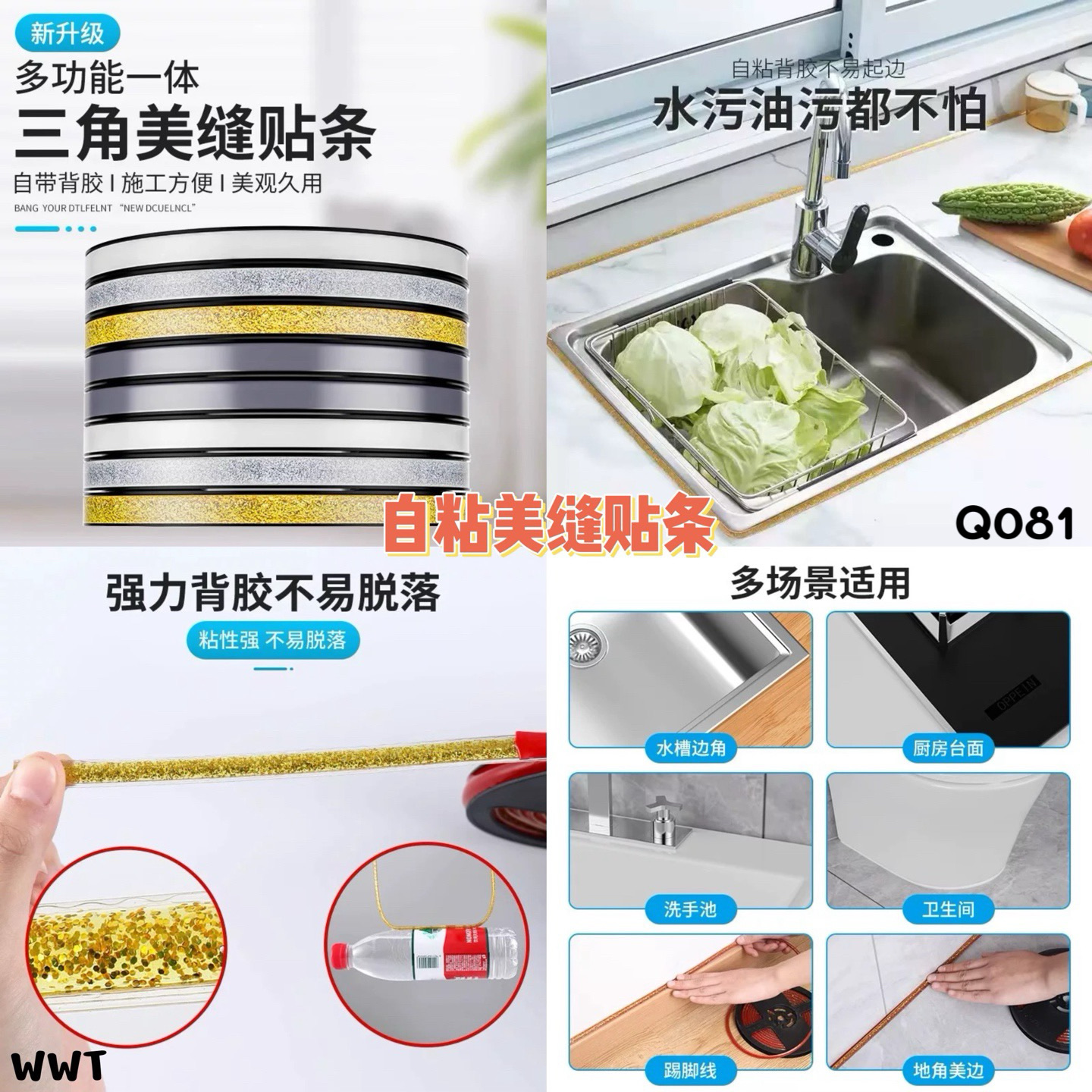 防水防油不翘边,背胶强力不易脱落,轻松解决缝隙脏乱问题💦。适用于水槽、灶台、卫生间