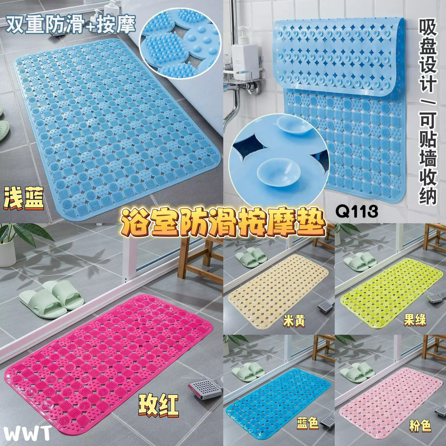 🚿双重防滑+按摩设计,洗澡不怕滑,脚底还舒服得像做SPA!吸盘底部,稳稳贴住地面,还能贴墙收纳,整洁不碍事~