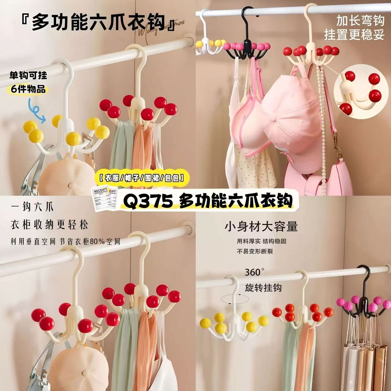 360度自由旋转,六爪设计空间翻倍,让你的厨房、浴室、衣柜瞬间整齐有序!