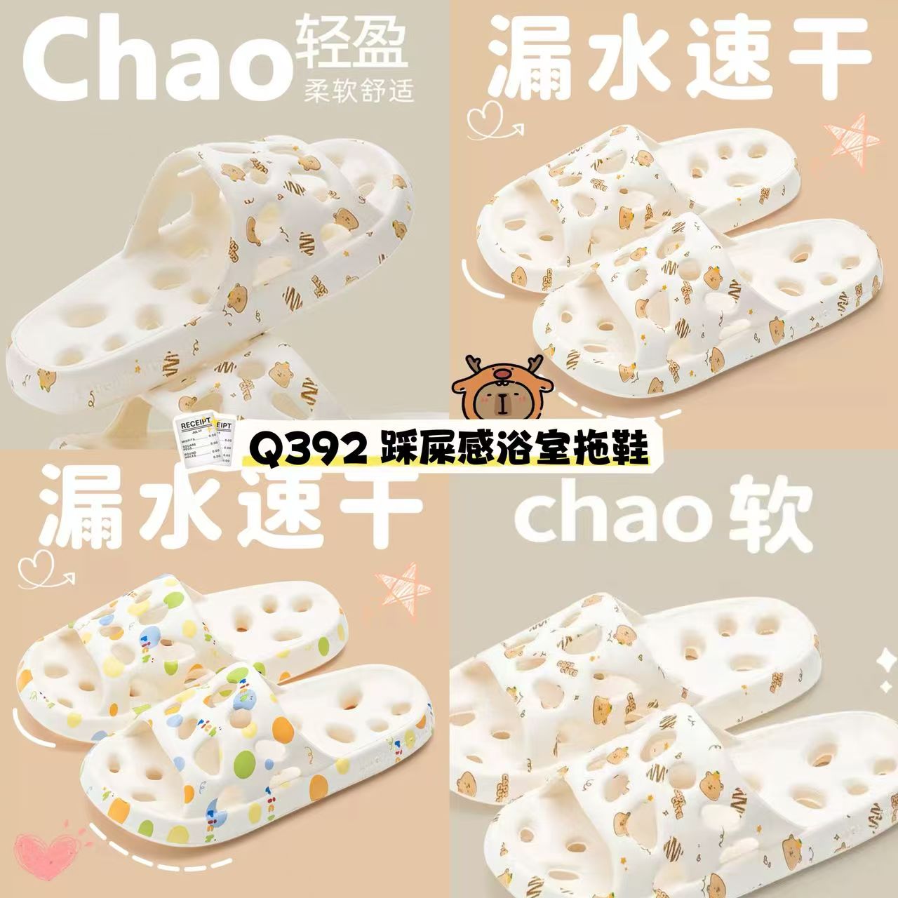全新镂空速干设计,踩屎感厚底,走动间自动排干积水,让双脚永远告别湿哒哒!