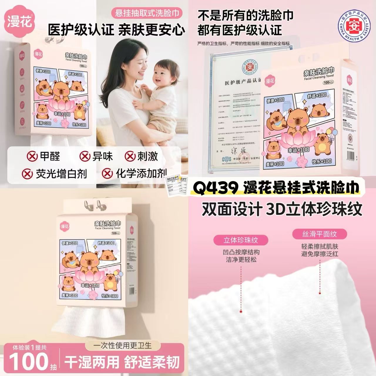 Q439 漫花悬挂式洗脸巾(2提200张)