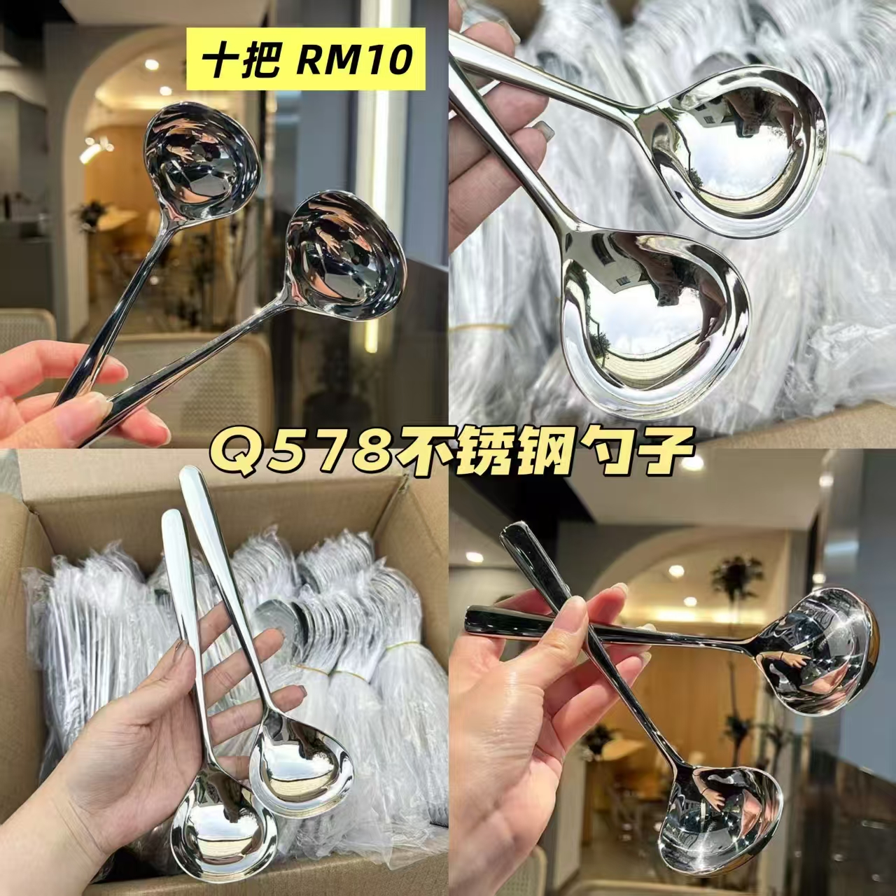【10支装】不锈钢勺子 家用汤勺加厚长柄厨房喝粥勺大号汤匙量勺