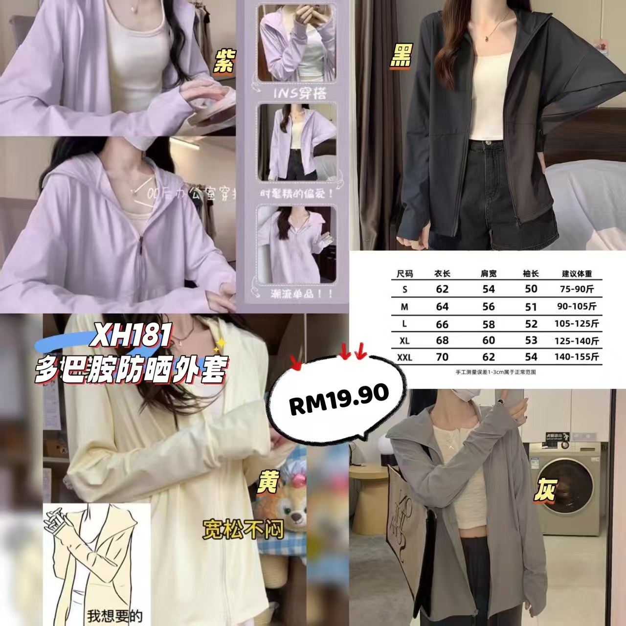 XH181 多巴胺防晒衣 🛒 #一件Rm19.90 Size➡️S/M/L/XL/2XL 颜色➡️紫/黄/黑/灰