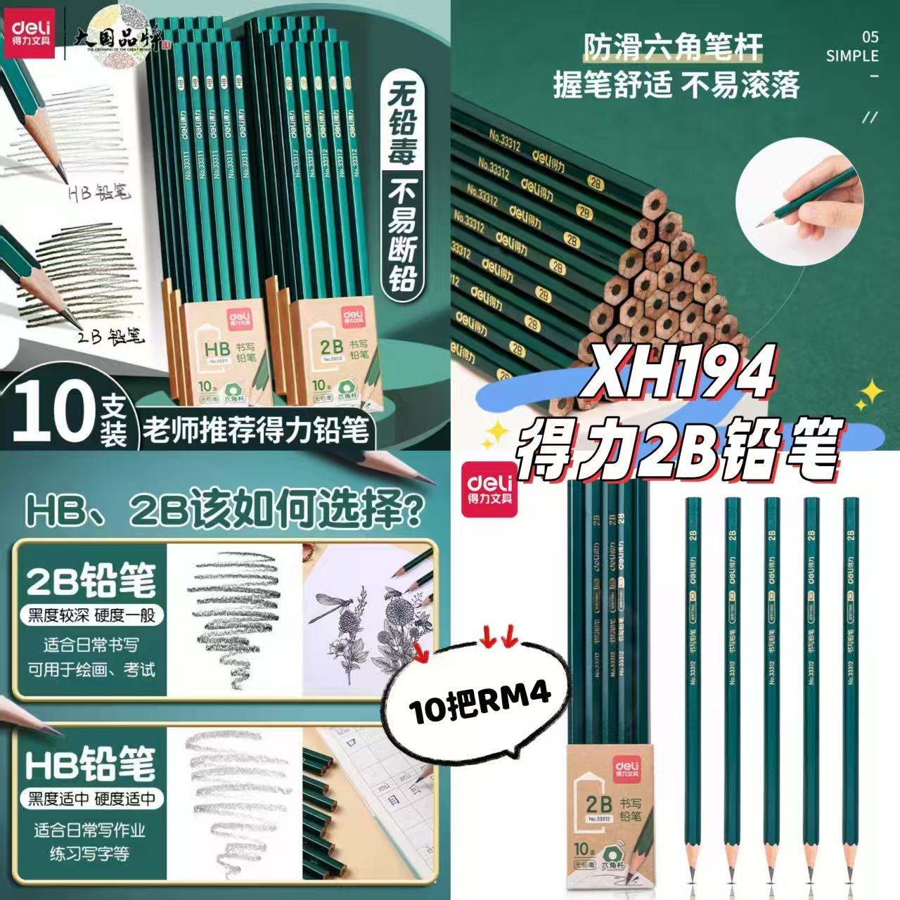 XH194 得力2B铅笔(10把)