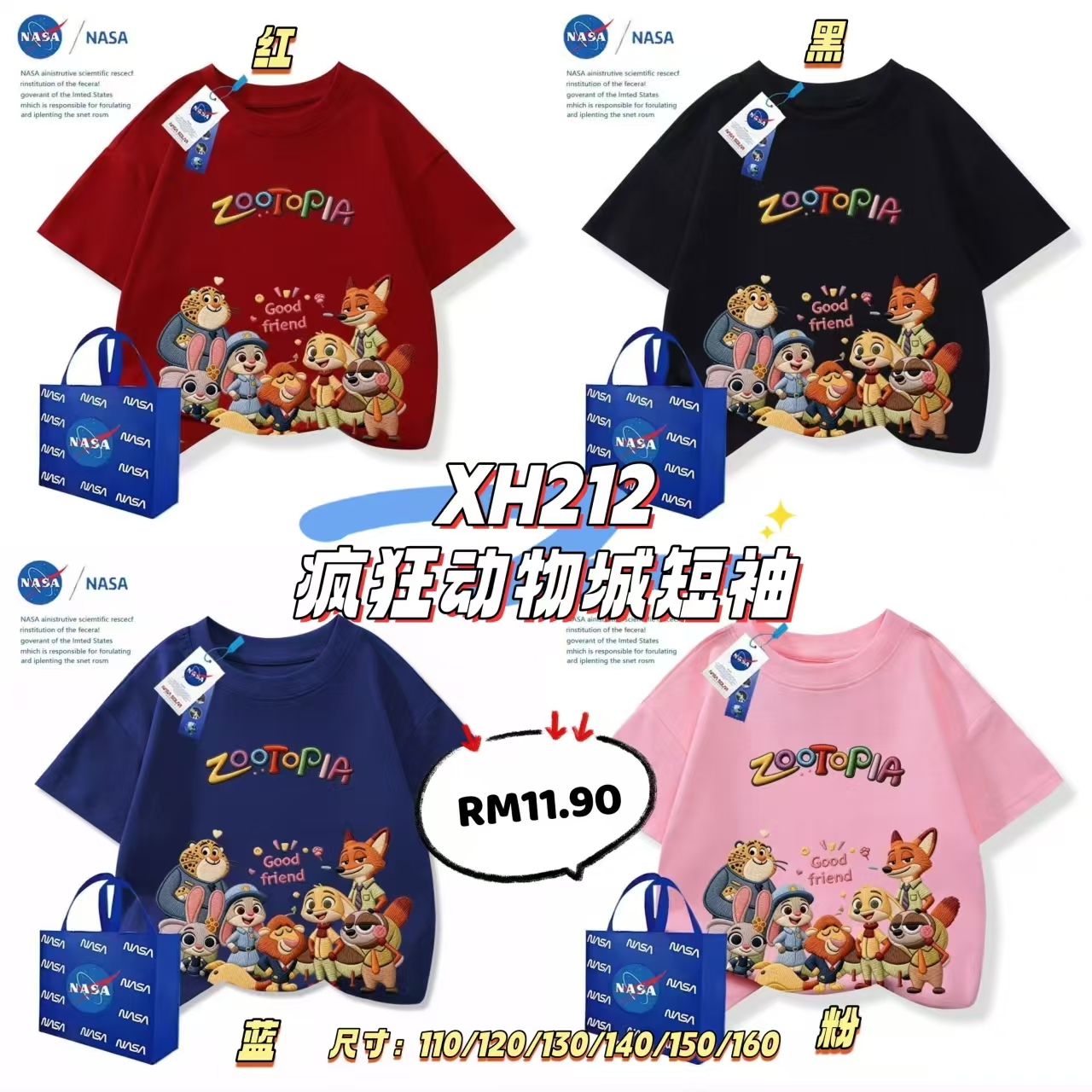 XH212 疯狂动物城短袖 🛒 #一件RM11.90