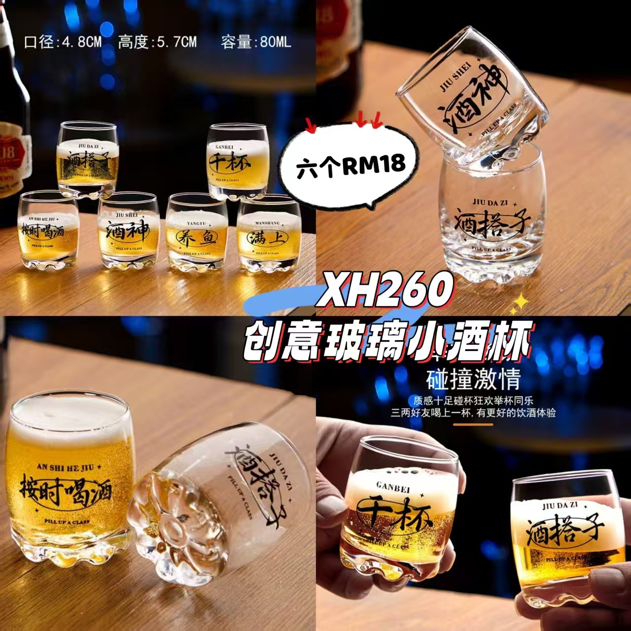 XH260 创意玻璃小酒杯 🛒 #六个RM18