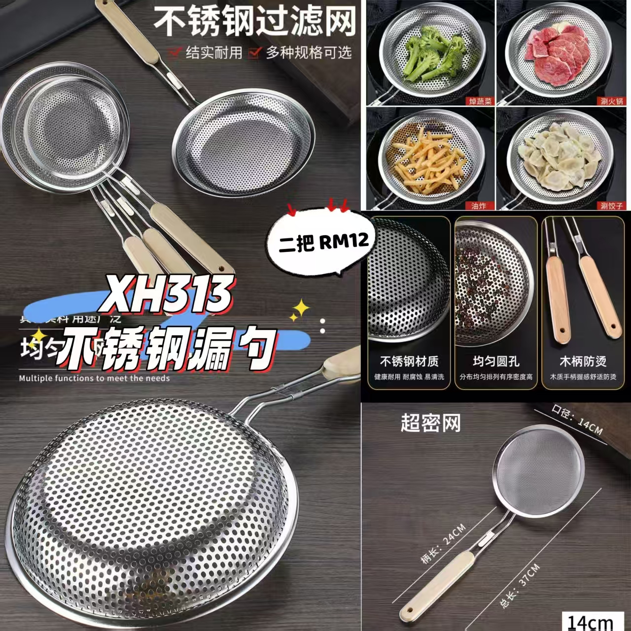 XH313 不锈钢漏勺 🛒 #二把RM12