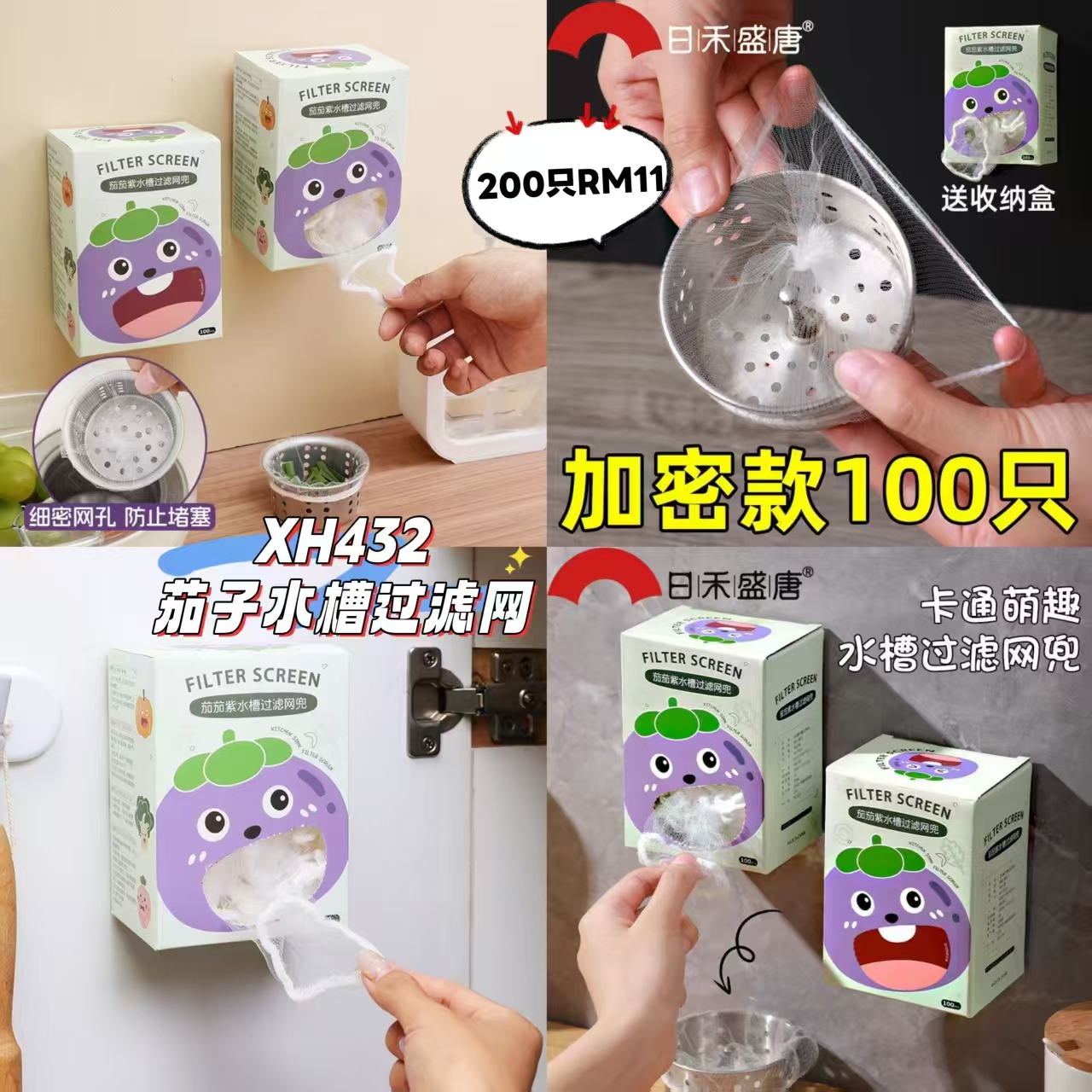 XH432 茄子水槽过滤网 🛒 #200只RM11