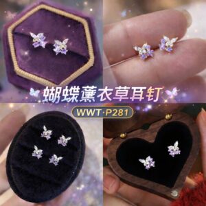 P281 蝴蝶薰衣草耳钉 (一对)